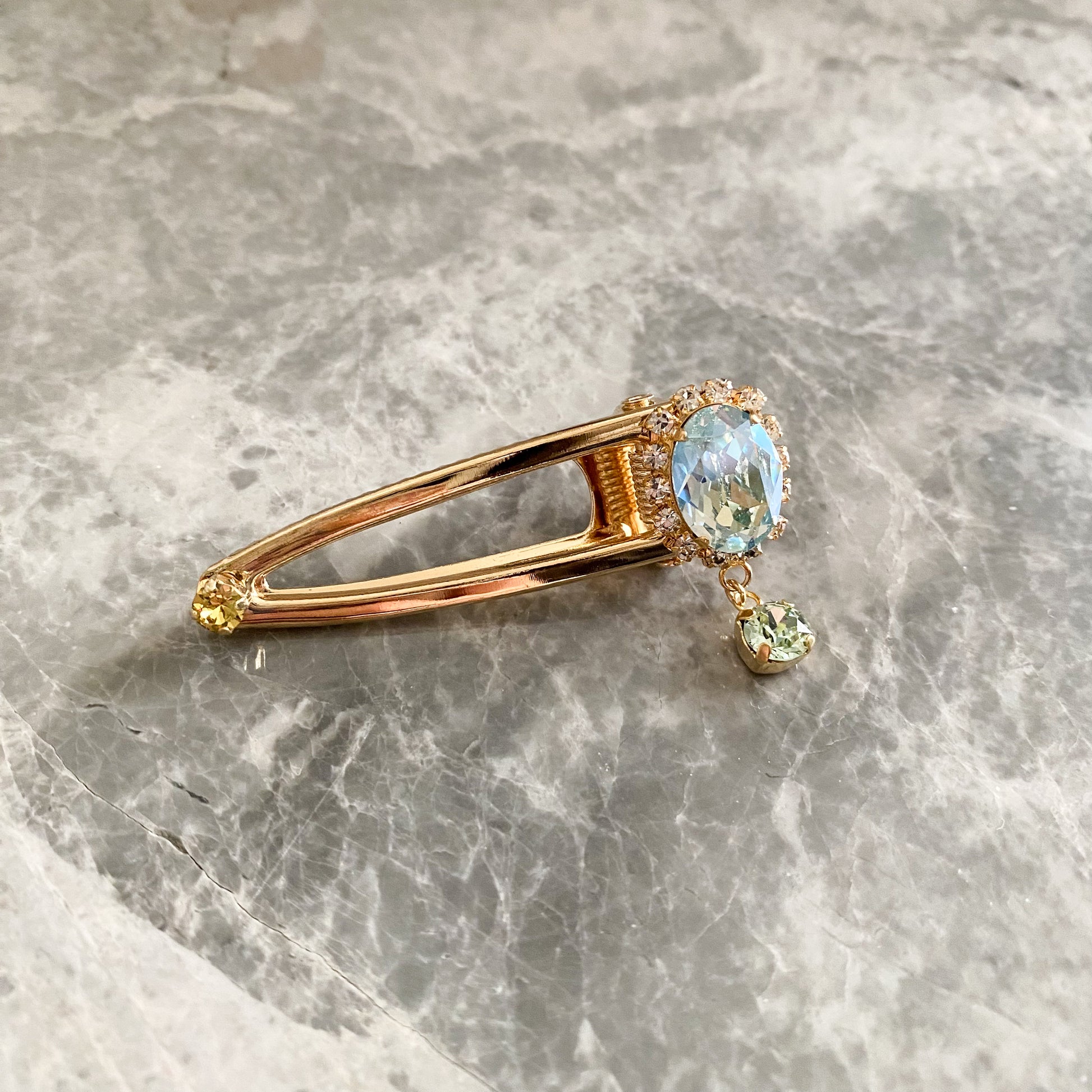 【数量限定】揺れる光のきらめき|スワロフスキークリスタル|ヘアクリップ(限定・新緑グリーンカラー)