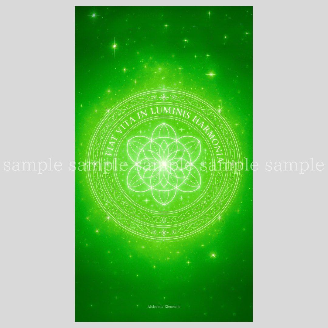 ライトグリーンの癒しの波動と、フラワー・オブ・ライフの神聖構造が、心・体・魂のバランスを整え、自然治癒力を高めます。